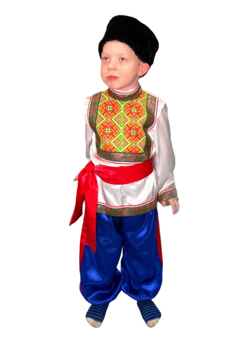 В комплект входят: рубаха, шаровары, кушак, папаха.