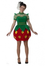 В комплекте: красно-зеленое платье в виде клубнички с коротким рукавом и берет.