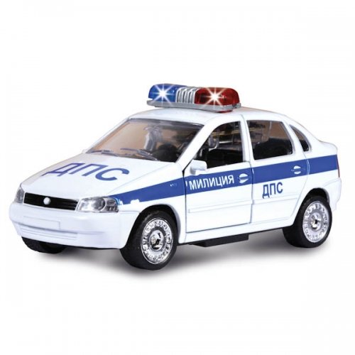 Машина металлическая "Лада - Калина ДПС" имеет инерционный механизм.