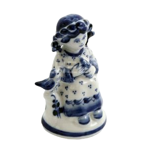 Скульптура в технике гжельской росписи изображает девочку – маленькую хозяюшку. Этот Гжельский сувенир может быть полезен в педагогической работе на тематических занятиях в детских садах или детских изостудиях.