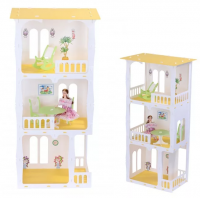 Комплектность: детали для постройки домика, кресло-качалка, 2 стула, стол, наклейки. Размеры домика: 50х34х105 см. Домик подходит для кукол высотой до 30 см. Материал: пластик. Возраст: от 3 лет