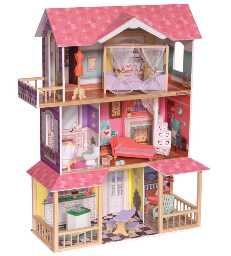 3-х этажный кукольный домик с деревянным каркасом, гармонично впишется в интерьер детской комнаты.