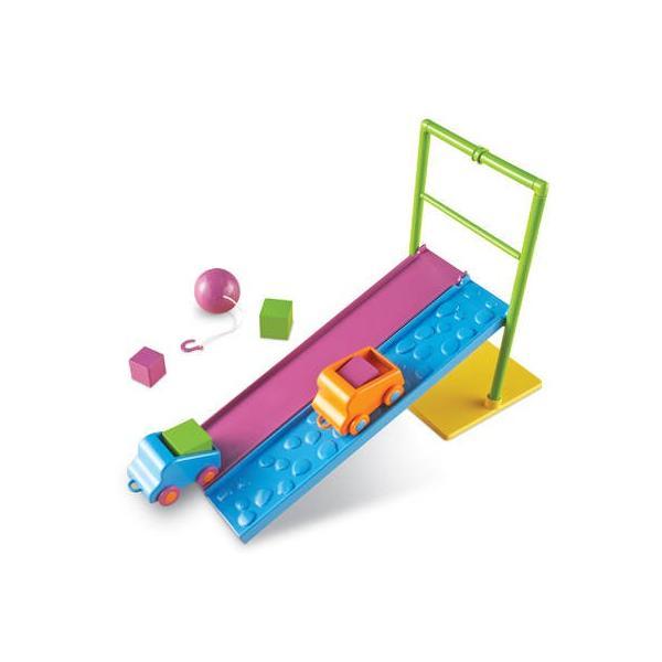 Этот интересный набор поможет малышам в игровой форме познакомиться с азами физики. Выполняя увлекательные упражнения, они на практике узнают, что такое гравитация, инерция и сила трения.