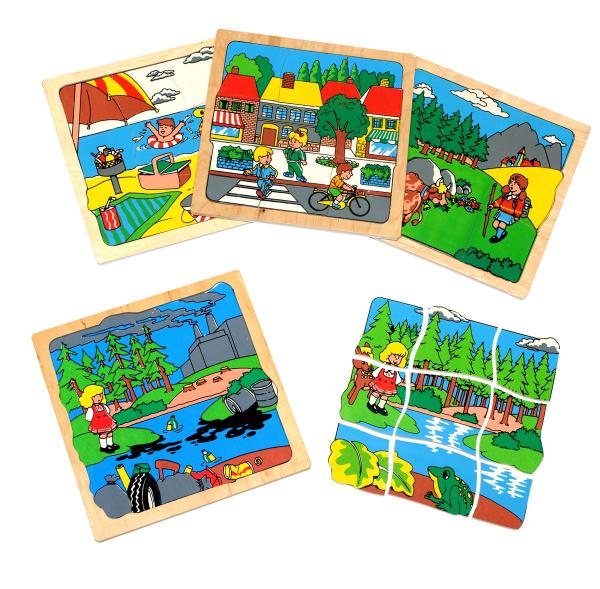 Верхняя картинка изображает экологически чистый уголок земли (город, водоем, горы, пляж), а нижняя – ту же местность, но загрязненную и обезображенную цивилизацией. Серия демонстрирует две модели отношения к природе: хорошо и плохо, заставляет задуматься о том, что правильно, а что не правильно. С помощью данной игры малыш научиться собирать из частей целое. С вашей помощью расширит свой кругозор и словарный запас, научиться сочинять рассказы, узнает о правильном отношении к природе. Узнает, разобрав верхнюю картинку о последствиях небрежного отношения к окружающей среде.
