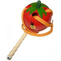 Увлекательный тренажер подходит для детей самого раннего возраста. Для того чтобы малышу было удобнее продевать шнурок, в комплекте есть специальная деревянная «игла», выполненная в виде любопытного червячка. Ребенок помещает «иглу» в отверстие и постепенно опутывает «помидорчик» шнурком.