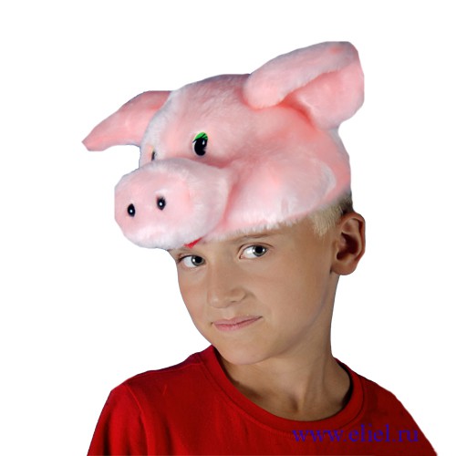 Меховая маска-шапочка для постановки "Трех поросят", без завязочек.