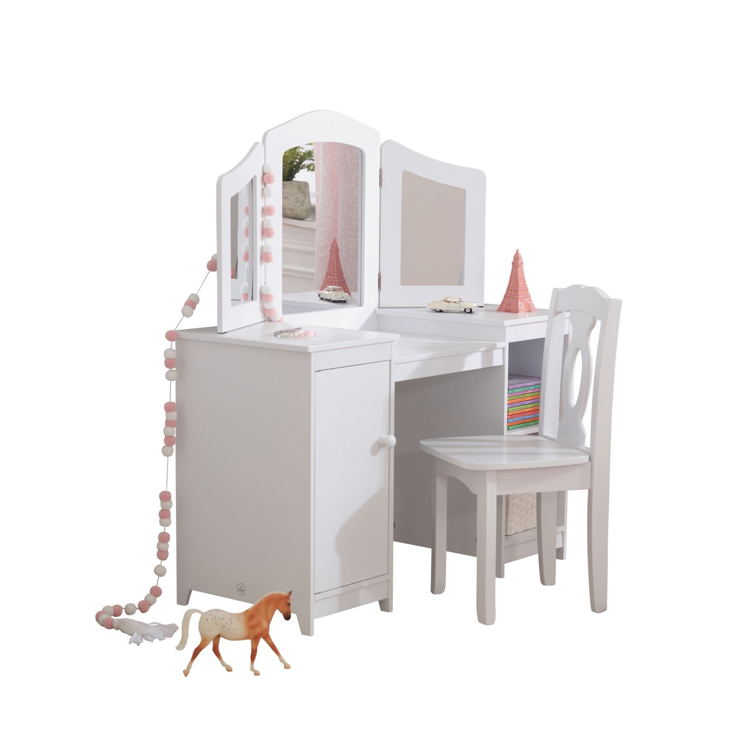 Туалетный столик для девочки «Делюкс"" от KidKraft (КидКрафт) – это очень реалистичная уменьшенная копия полноценного женского косметического столика. Именно о таком столике мечтает каждая маленькая модница, ведь он позволяет девочке ощутить себя уже не просто ребенком, а взрослой и красивой девушкой.