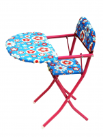 Стульчик со столиком яркой расцветки, за которым маленькая «мама» может покормить своего «малыша», расставив на удобный столик игрушечную посудку.