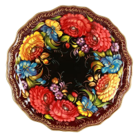 Жостовский поднос с изображением садовых цветов с классическим черным фоном.