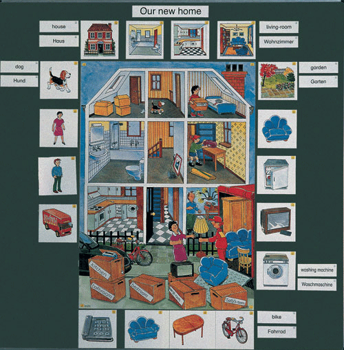 Плакаты дополняются двумя игровыми пособиями Memo Game и Spinning Game, построенными на сопоставлении картинок и слов английского и немецкого язык.