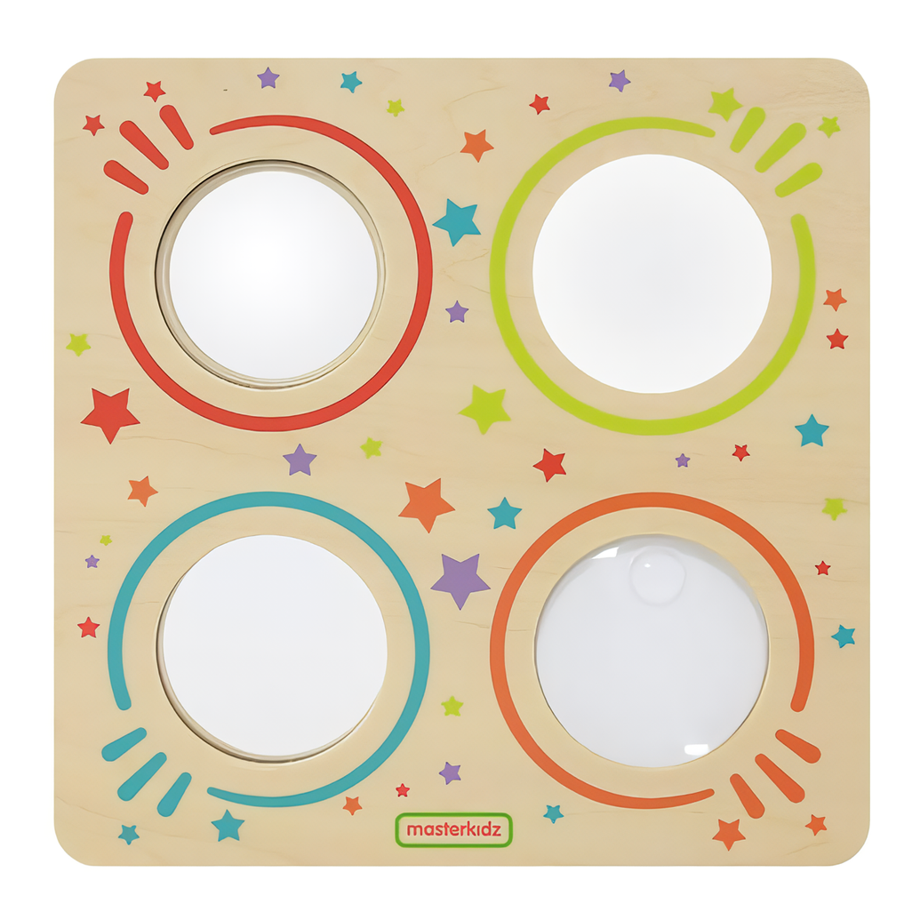 Пособие представляет из себя панель на которой закреплены: зеркало, лупа, вогнутая линза и выпуклая линза. Панель предназначена для развития кругозора, сенсорики; возможно использование при различных играх.