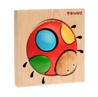 Основа игрушки - небольшая деревянная рамки-подставка, изготовлена из массива сосны. Рамка имеет сзади ножку - это подставка, чтобы рамку можно было поставить для удобства сборки под небольшим углом. Малышу предлагается сложить внутри выемки в рамке фигурку божьей коровки. Фигурка составная, простая - всего 5 деталей. Часть деталей окрашены, часть нет. Хотя на фото окрашены все детали.