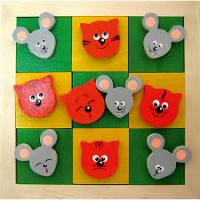 Одна из любимых игр детства "Крестики - нолики", воплощена на этом игровом поле, только вместо крестиков - кошки, а вместо ноликов - мышки.