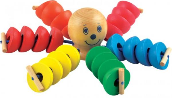 Игра-шнуровка "Осьминог" состоит из симпатичной головы осьминога, к которой на веревочках приделаны щупальца.