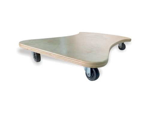 Имеет широкую поверхность и четыре далеко расставленных колеса